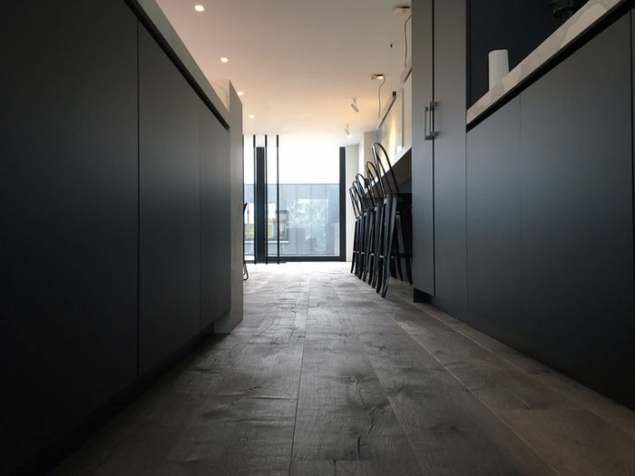 Un processus de coupe unique expose le cœur du chêne, créant des planches au caractère nettement rustique. Ces planches sont guidées par des processus naturels pour obtenir un résultat organique.
