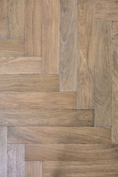 La pose en chevrons apporte un rythme raffiné qui souligne l’authenticité du décor sans le dominer.